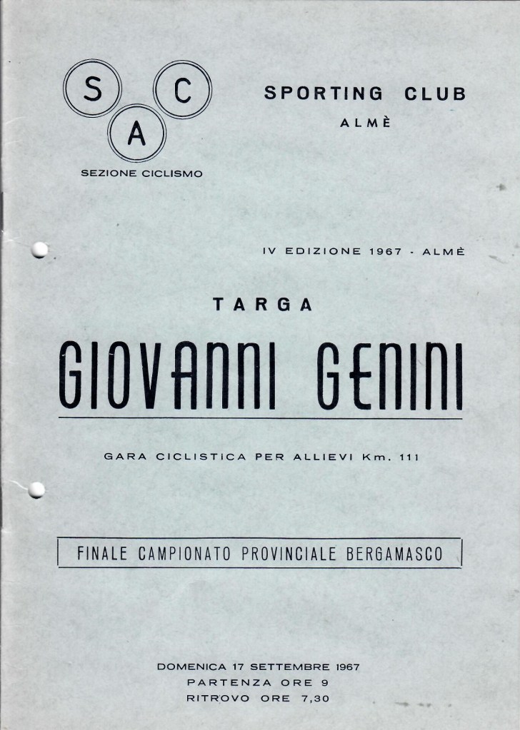 CICLISMO – CAMPIONATO PROVINCIALE ALLIEVI 1964 – 67 TARGA GIOVANNI GENINI