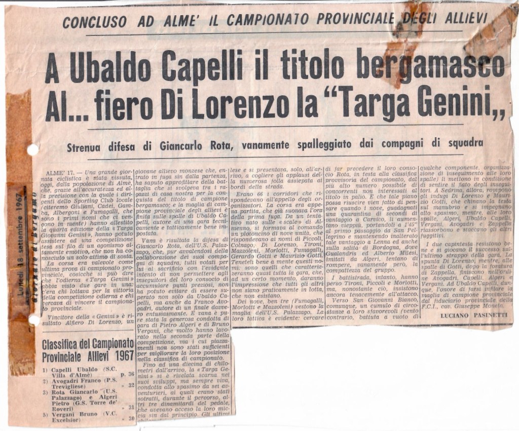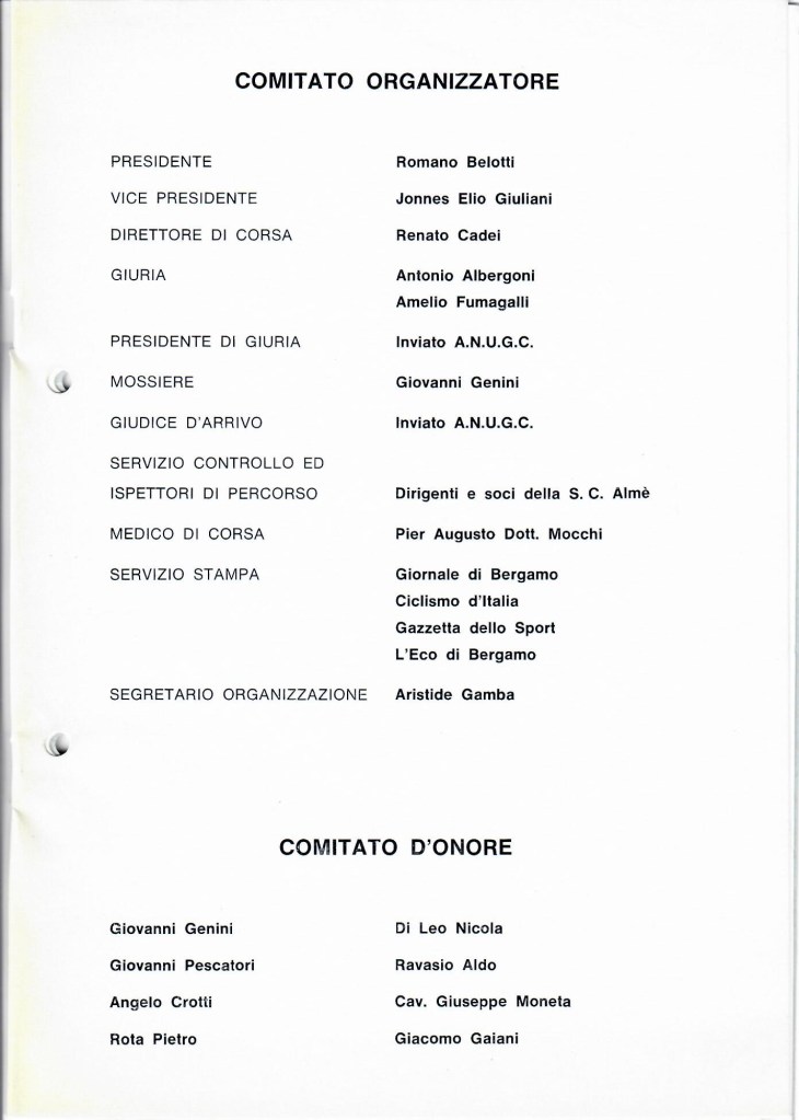 Ricordiamo a tale proposito, l’amico Jonnes Elio Giuliani, vice Presidente del Comitato e cronista sportivo, a quel tempo del quotidiano “Giornale di Bergamo”.