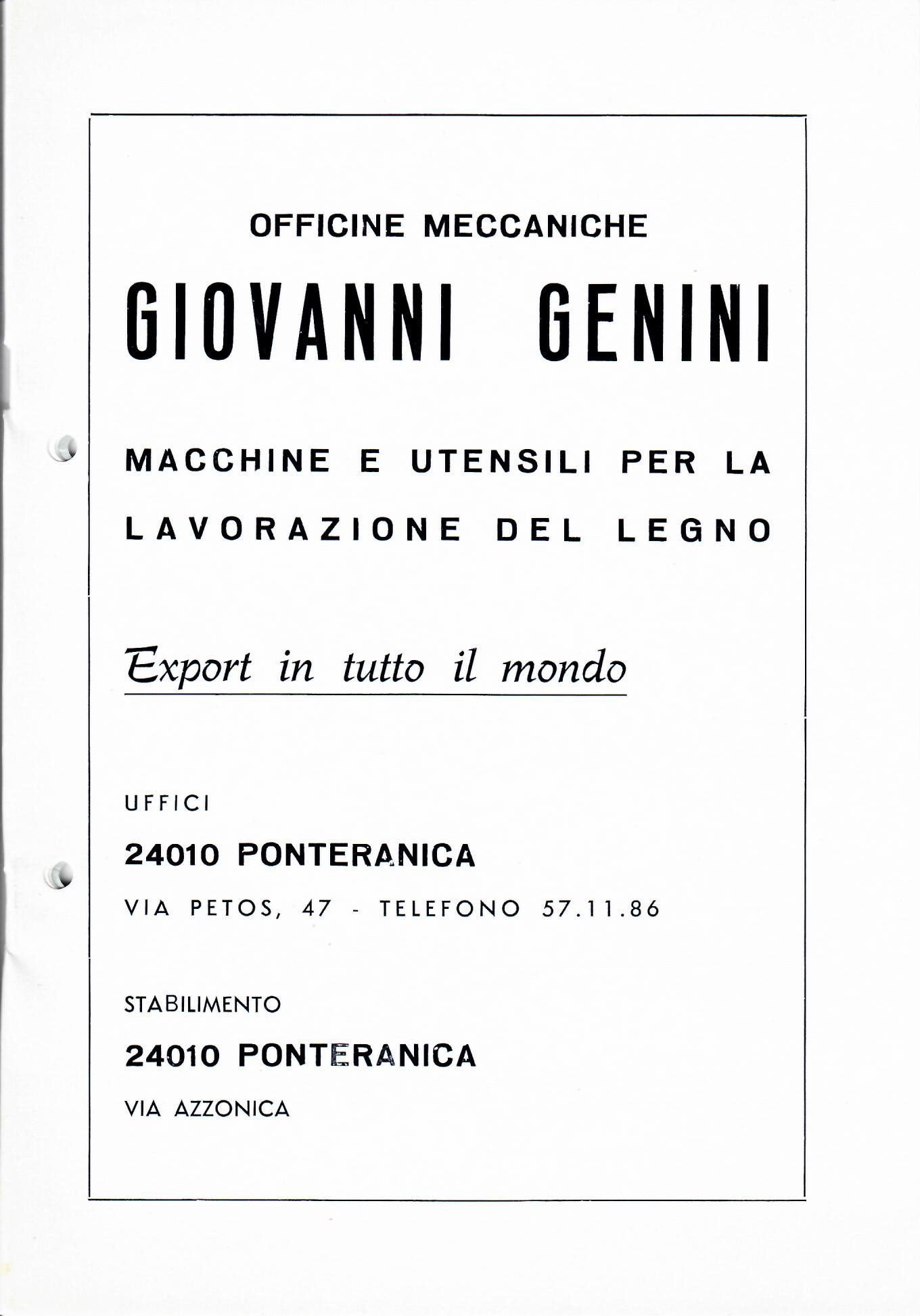 E’ anche obbligo ricordare che la Valle Brembana era una Valle dove la lavorazione del legno tornito era molto diffusa. In Val Brembilla e Valle Imagna erano presenti innumerevoli aziende di torneria e sicuramente l’impatto pubblicitario giovò a quella nuova azienda “Genini Giovanni” rinata nello stesso anno 1964, della prima targa.
