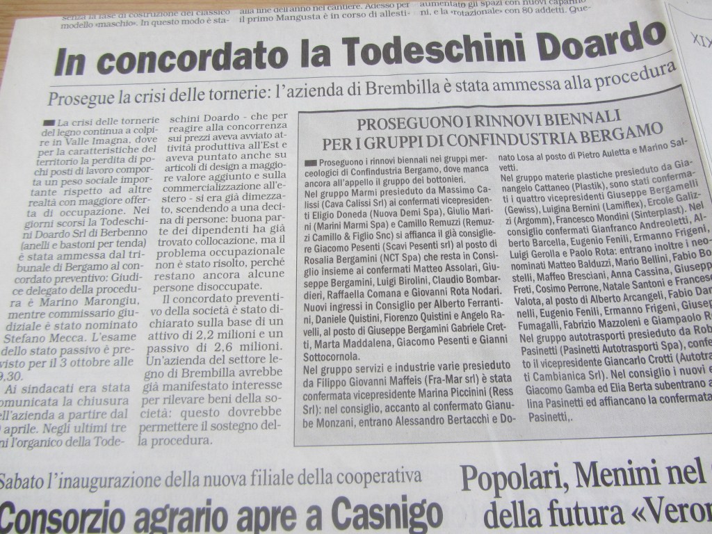 In concordato la Todeschini Doardo.
