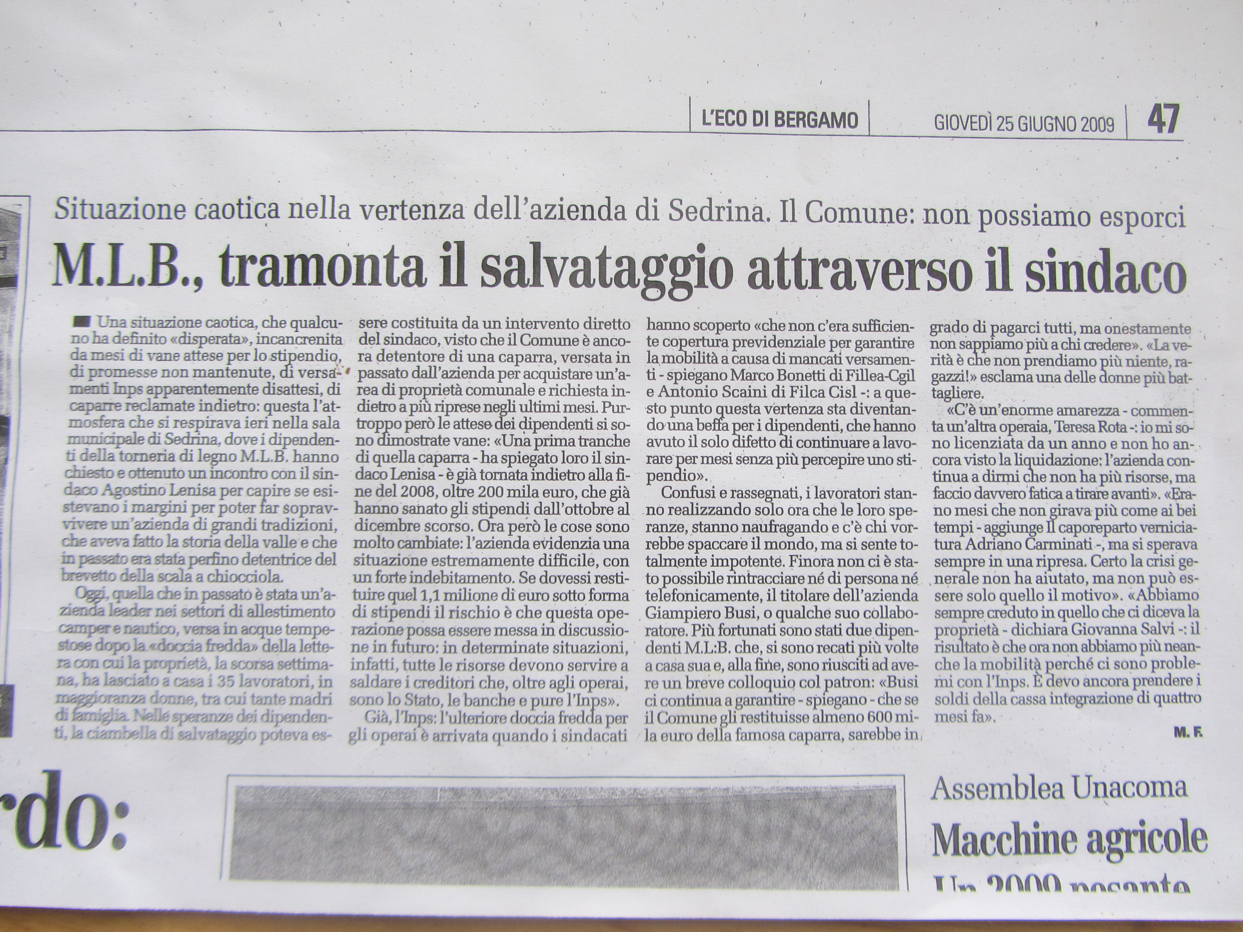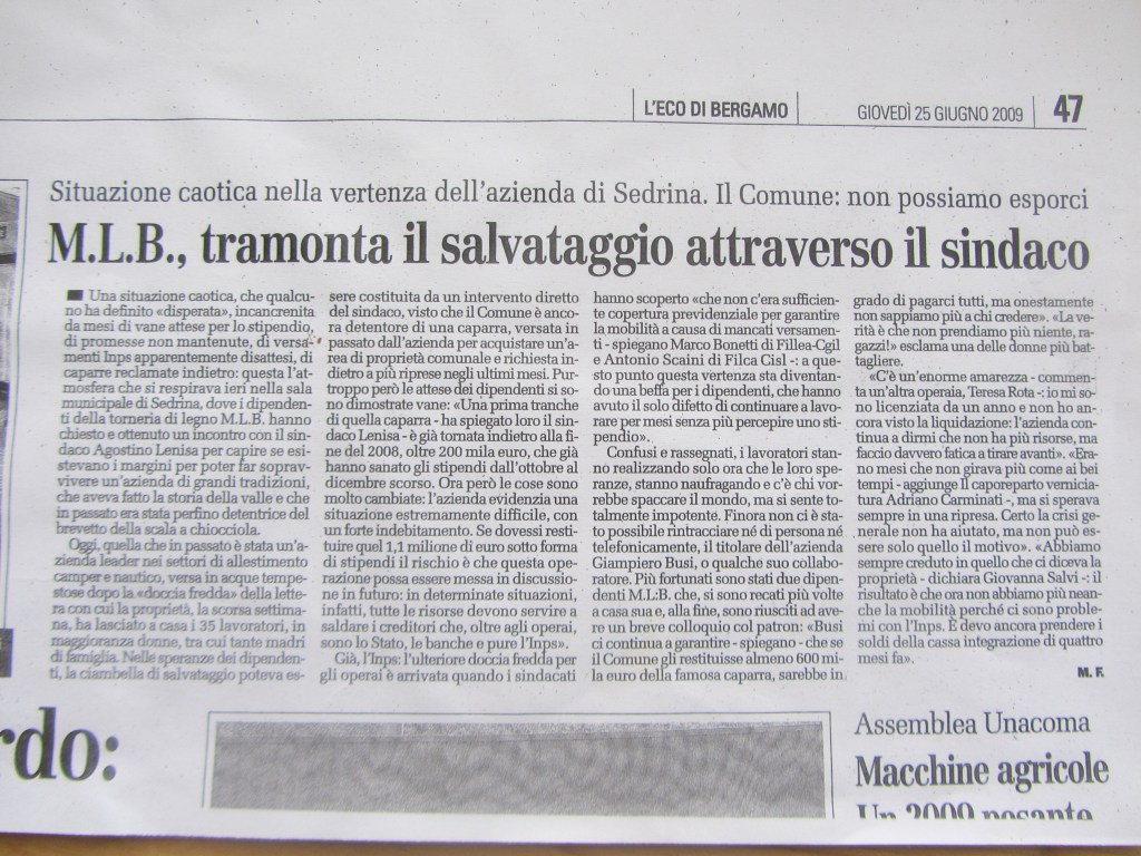 Situazione caotica dell’azienda di Sedrina.