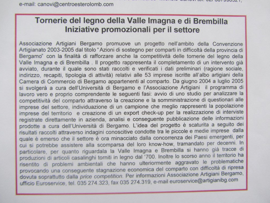 Non era crisi ma il proseguimento di una migrazione produttiva di un settore: iniziato molto lentamente nel lontano 1982 : quello della torneria del legno.