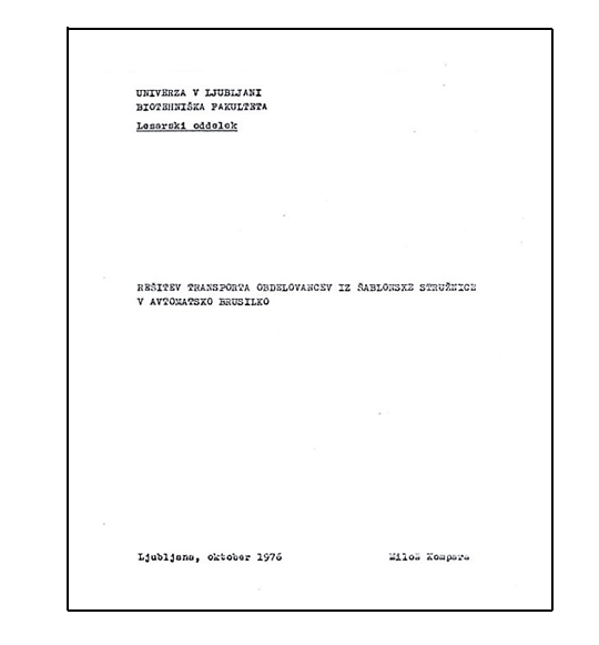 Fu una sorpresa, quando nel 1976 ricevemmo la copia di una tesi universitaria da MILOS KOMPARA Ingegnere meccanico che aveva frequentato l’Università di Lubiana, facoltà di Biotecnica, intitolata: