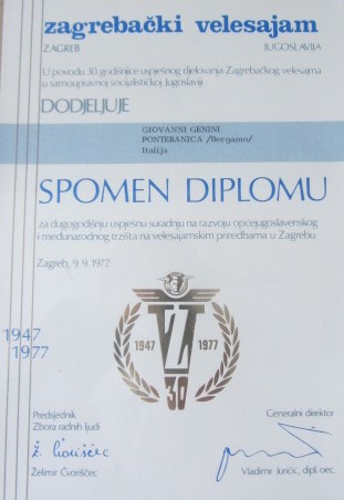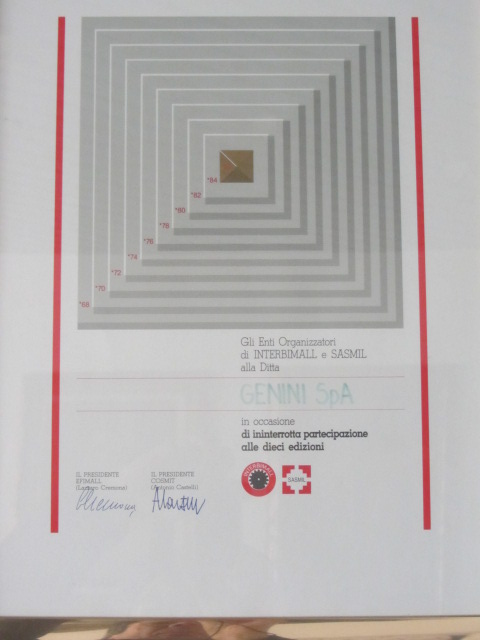 La storia della ditta Genini è costellata di onorificenze e diplomi di merito per l’impegno al lavoro, la partecipazione di fiere nel mondo e le novità tecniche realizzate.